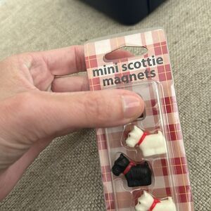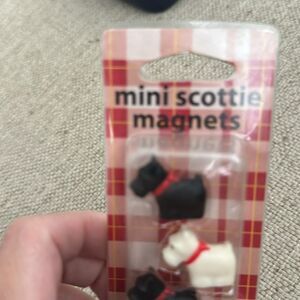 So adorable mini magnets in the shape of Scottie dogs. These are still new in the original packaging.