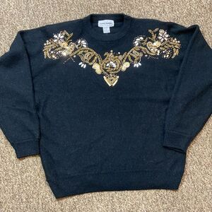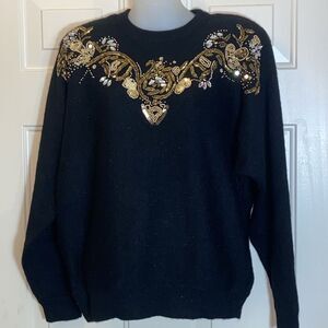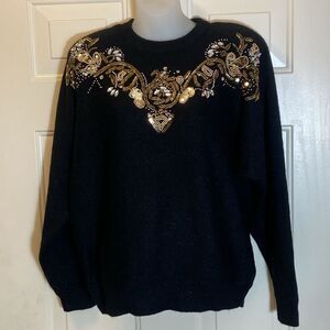 New Vintage Alfred Dunner Rhinestone and Sequin Black Women’s Sweater Size L