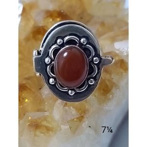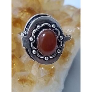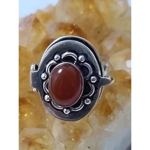 New *Vintage Style Carnelian Poison Ring set in Sterling Silver Overlay.
