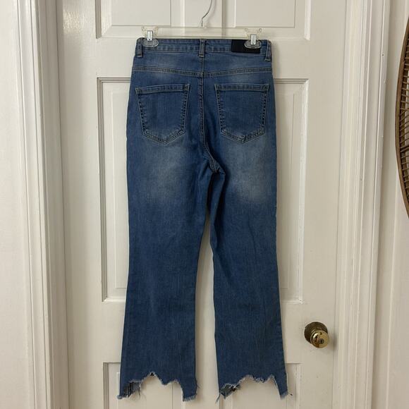 New|Vintage High Rise Distressed Frayed Medium Wash Blue Denim Jeans Sz 6