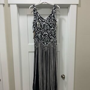 New with tags. Great quality. Size: 10. Color: black and white. Gorgeous design, Imported elastic lace fabric. The body is all handmade matte double-sided sequins ( 2 ways of appearance, gradient color effect ) also with beading, presenting the gradual effect of rose flowers on the lace fabric, decorated with black and white tassels, a very special & exquisite party dress. Zipper at left side. Lined