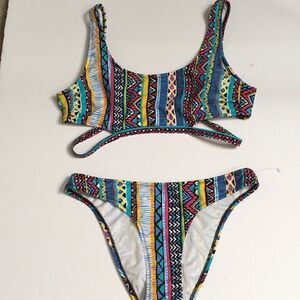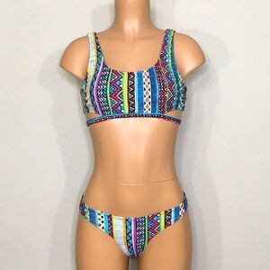 New. Volcom Aztec bikini set. Beautiful colors of pink, blue, yellow, teal, white and black. Love this fun colorful suit.