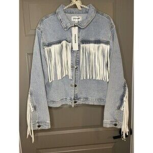 NewW tags BRIDE Denim L Jean Jacket fringe bachelorette party wedding honeymoon