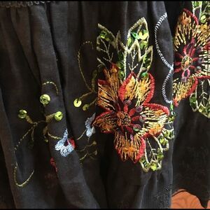 New WD.NY maxi skirt with sequin and appliqué floral design, side zip closure and some stretch. Waist 36” and length 38”. Brand new with no tags attached.