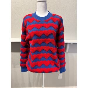 Wave pattern pointelle sweater + Ribbed mock neck + Drop shoulder long sleeves with ribbed cuffs + Relaxed fit pullover + Semi-cropped length + Scalloped hem
