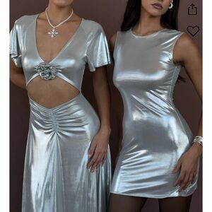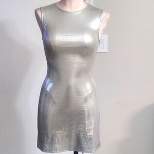 Shine in this stunning metallic silver sleeveless dress. Perfect for a night out or special occasion.