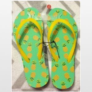 Tags-JS_Gems js gems spring summer fall beach pool vacation stylish cute sexy comfortable festival urban streetwear night party #NWT #shoes #flipflops #green #yellow #pineapple #small
