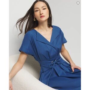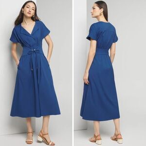 New! White House Black Market Short Sleeve Collar Poplin Midi Dress, size S