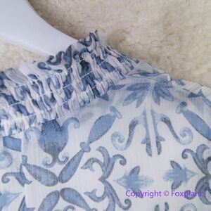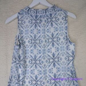 The blue + white print on this mini dress evokes European tiles. The high neck has a subtle smocking, and the skirt is tiered. A removeable belt lets you be your own stylist.