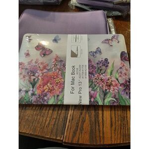 New With Tags Attached Wocadi 5-in-1 Purple Clesr Flower and Butterfly Design #13 Case Compatible with MacBook New Pro 13" A2338, A2251/A2289, A1706/A1708, A1989/A2159 Hard Shell Cover, Slim Sleeve, Pouch, Keyboard Cover, and Screen Protector.