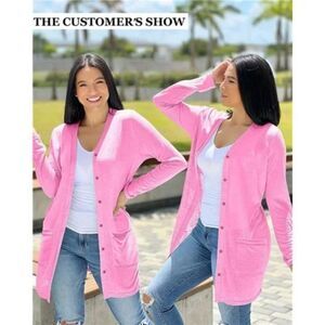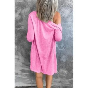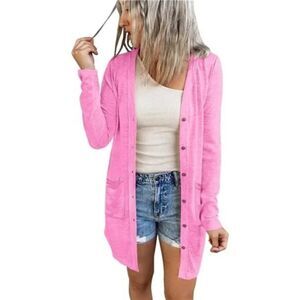 New Women's Open Front Lightweight Cardigan Long Sleeve, Pink