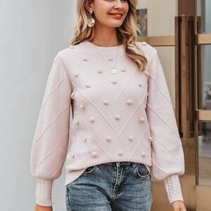 New Women's Crew Neck Lantern Sleeve Sweater Pullover