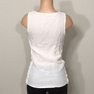 Very nice tank top. Woven knit front with linen back. Button detail on the bottom sides.