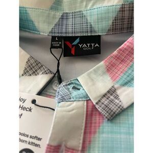 New Yatta Mens Multicolor Geometric Two Button Placket Golf Polo Shirt Size L