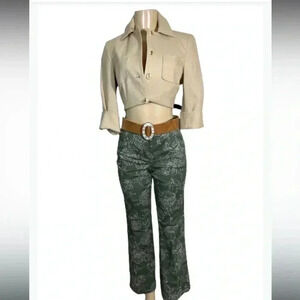 NewYork & Co Boot Cut Pants Olive Green & Crem Floral Print