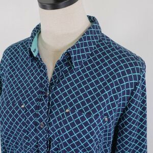 New York & Company 7th Avenue Collared Button Front Shirt Top Large Blue Teal