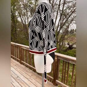 New York & Company Geometric Black and White Sweater with Red Accent New Size XL