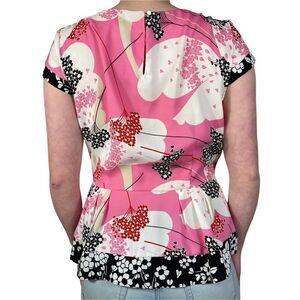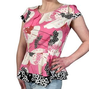 New York & Company Pink and Black Flora Top
