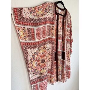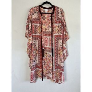 New York & Company Women's Abstract Boho Floral Print Open Front Cardigan Duster