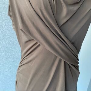New York & Company Stretch Y2K Brown Short Sleeve Ruched Top SZ M