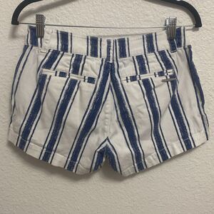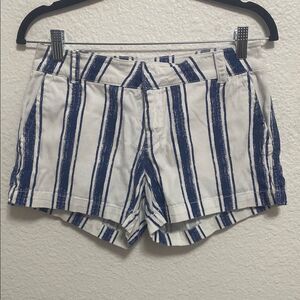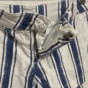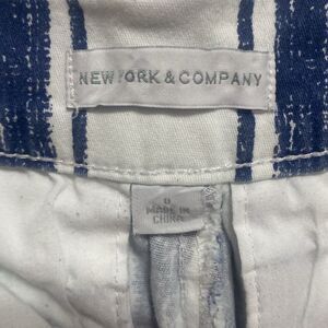 New York and Company women’s short size 0 like new condition zipper hook, fly and button enclosure for pocket style, white and blue stripes continent spandex material