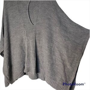 New With Tags! New York & Company Gray Oversized Pullover Mock Neck Boho Knit Spark-Bite Hem Sweater Poncho In A Size S/M ! Has Cut Out Detailing Pattern In The Front ! Definitely A Statement Piece To Have In Your Closet ! Open On The Sides !