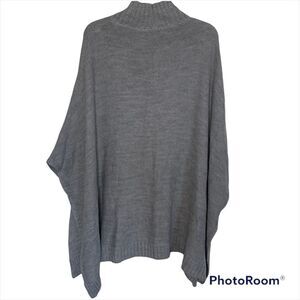 New York & Company Gray Oversized Pullover Mock Neck Boho Sweater Poncho
