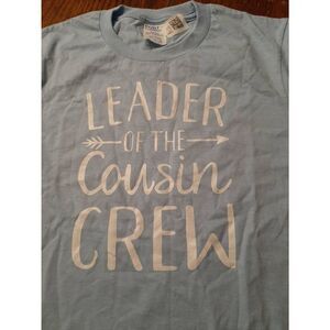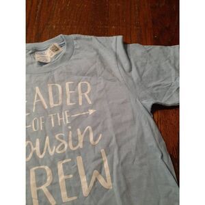 New With Printers Label Still Unisex Youth Suze Medium Blue with White Port & Company Ring Spun Fan Favorite Short Sleeve Crew Neck "Leader of the Cousin Crew" Cotton Tee T-Shirt Top