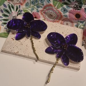 A must have gorgeous deep purple enamel beauties from Zara. Surprise, they are lightweight, stunning statement earrings.