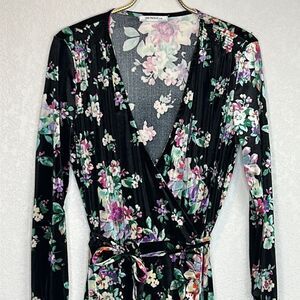 New ZARA Floral-Print Velvet Wrap Midi Dress Small
