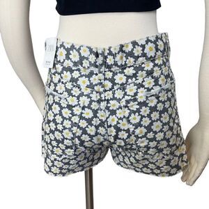 New Zara Daisy Print High Waist Straight Raw Hem Shorts Size 6