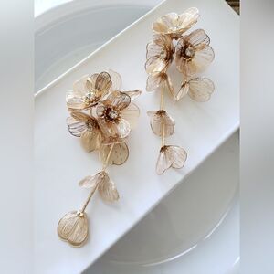 These Stunning Zara For Kate Middleton Cascading Floral Earrings. A Must-Have Elegant & Beautiful Earrings. Features Delicate Petals With Silver Gem Stones. Push Backs Lightweight.