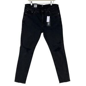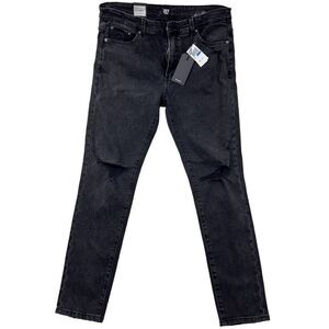 NWT ZeeGeeWhy Men Black Ripped Jeans Pipes Skinny Crop Casual Cotton Pants US 36 MSRP $119