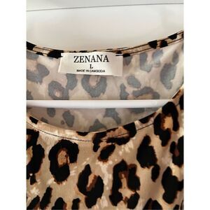 New in package. Leopard tank with twist on side. Rushing and flattering. Size L. Approx measurements across chest 19” length 25”