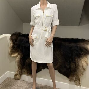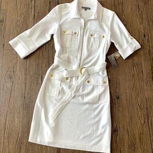 New with tags. The fabric is slightly stretchy, great quality, easy care.