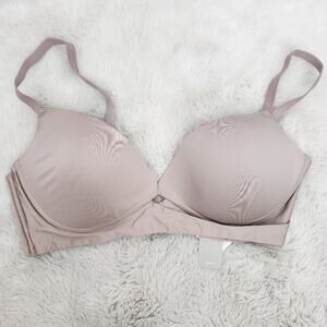 Newai Twin Cross Wide Strap Wireless Plunge Contour Bra Tan Nude 36C NWT