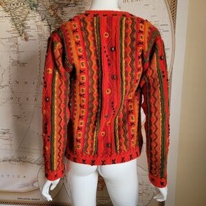 Newari hand knit red wool cardigan sweater Icelandic Design cozy artsy NWT S/M