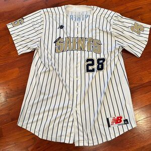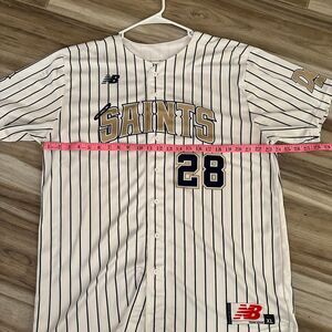 White and gold Striped New Balance Saints Button Up jersey Team Issue