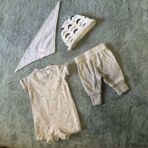An adorable and versatile 6-piece newborn bundle featuring top brands Nike and Child of Mine by Carter's! This set is perfect for mixing and matching, offering two distinct looks—a trendy Little Gentleman set and a cozy Outdoor Explorer set.