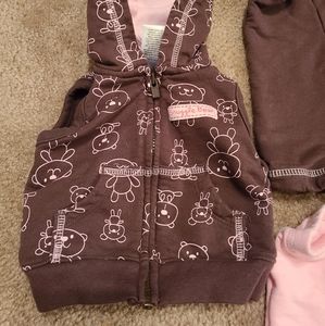 really cute newborn 5-8lbs set. Had one hooded warm Hoodie without sleeves. 2 pairs of pants to match. Excellent condition. Great baby gift or for your own baby.