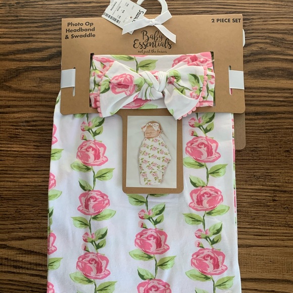 Newborn Swaddle Set with matching swaddle and headband. Perfect for hospital pictures! NWT. Would make a great gift!