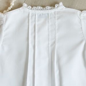 This Feltman Brothers Newborn Day Gown done in white is Lovely! A delicate French lace trims the neckline. The same sweet lace trims the sleeve cuffs. Rows and rows of tiny hand-sewn pin tucks sit on each side of the button front placket and fall into soft pleats down the front of the gown.Tiny pearlized buttons are a sweet element to this gown. Pink floral embroidery is centered on the from top of the gown, between the pin tucks. The back has more pin tucks that also fall into soft pleats down the gown. Lovely Baby Shower Gift!! Perfect Coming Home Outfit or first portraits!! Feltman Brothers traditional Heirloom Infant Clothing!!