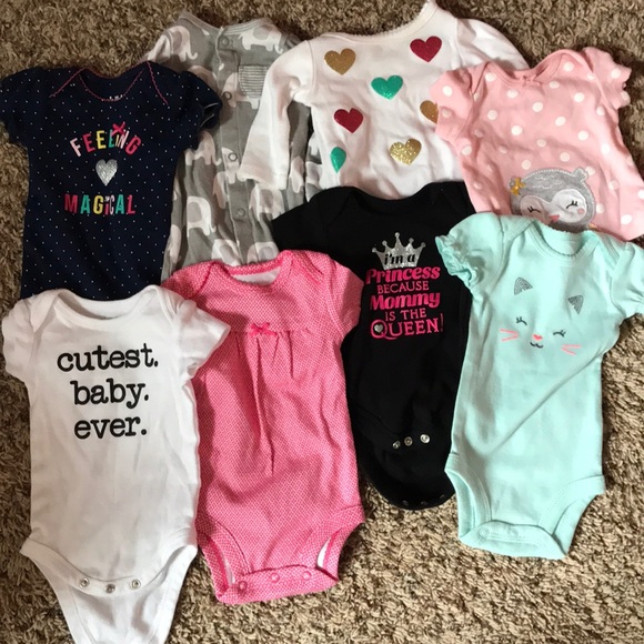 The gray one is long sleeve and so is the white hearts one, the pink Polkadotted one is a t-shirt, the rest are short sleeve onesies.