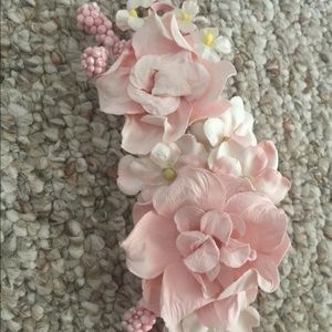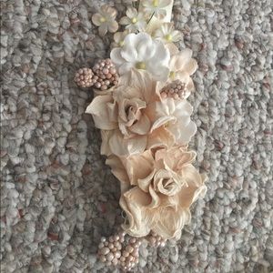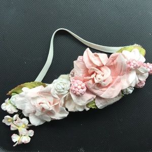 This headband was hand made by me for my daughters newborn pictures. I will be making a brand new one for you. I can make it in blue or creme as well. When purchased comment your baby's head size. Thanks!