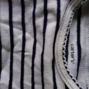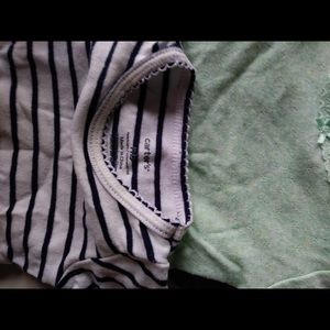 Newborn size onesies. The striped one has some discoloration on the collar. It isn't that noticeable. Other than that everything is in good condition. Striped and green one is from carter's
