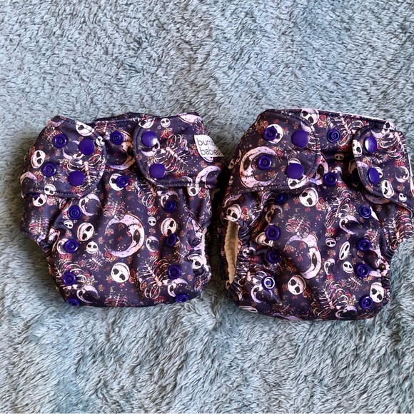 Stylish and eco-friendly, these cloth diapers feature a vibrant purple pattern. Perfect for keeping your little one comfortable and fashionable.