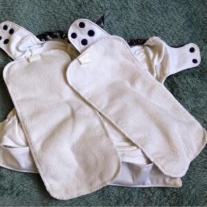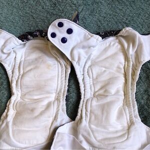 Light staining. Will most likely come out with more washes and sunning. Inserts included (also lightly stained). Bum bum babies brand. Snaps for umbilical cord protection.