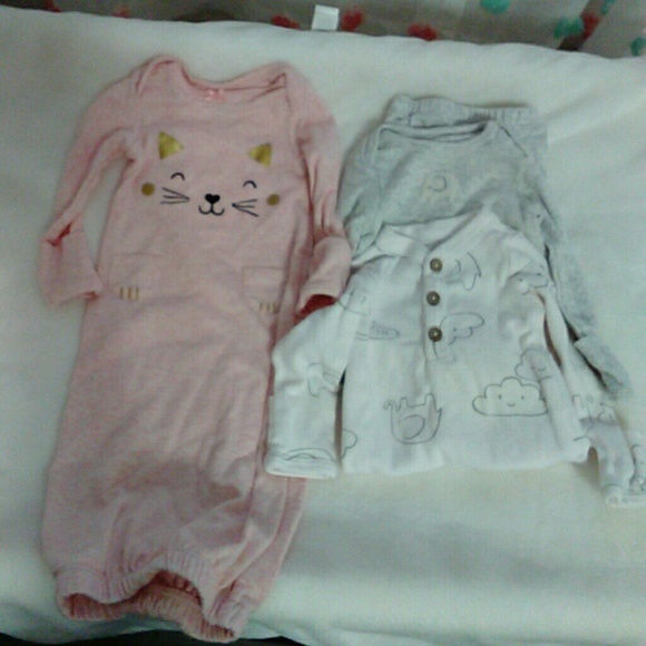 3 Carter's newborn sleepers with built-in mittens. NWOT...Items were gifted new and too small for my baby.