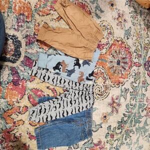 a variety of clothing from NB shirt, several 3 month pants, 0-6 month sleeper gowns, onesie, short overalls