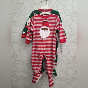 New boy's fleece Christmas Santa footed pajama bundle, 2pc